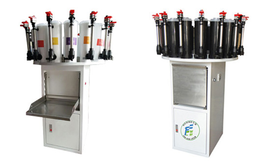 半自动墙漆调色机是一款全新设计的内墙、外墙调色机,全金属转盘转动灵稳;阀芯采用陶瓷材料,量尺坚持采用精铜材料,塑料件均采用耐腐蚀性材料;色浆罐专属桶盖,保持色浆干净;旋转及定位的色浆桶托盘,稳固耐用,方便调节。
