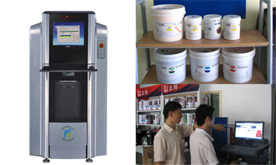 赋彩全自动电脑调色机以及配色软件跟色浆场景图